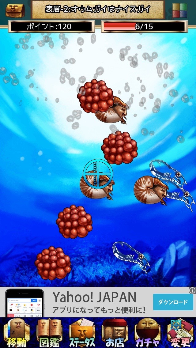 タップしていくだけのゲームではなく、アイテムやポイントをうまく使って、より珍しい深海生物をゲットしよう!
