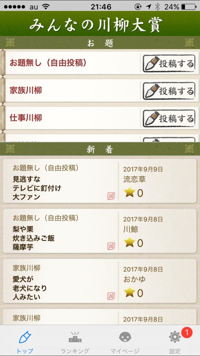 - 「みんなの川柳大賞」は川柳を投稿したり、投稿された作品を見て楽しむアプリ