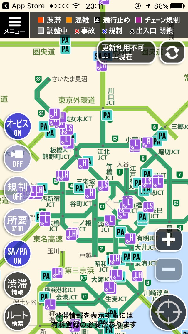 渋滞情報や通行止め、規制情報などは地図上で見るとややこしいものが多く、また音声だけだとなかなか覚えきれない場合があったりと意外と問題点が多いですが、このアプリは見やすい地図と分かりやすいアイコン説明でそれらの問題を解決しています。
