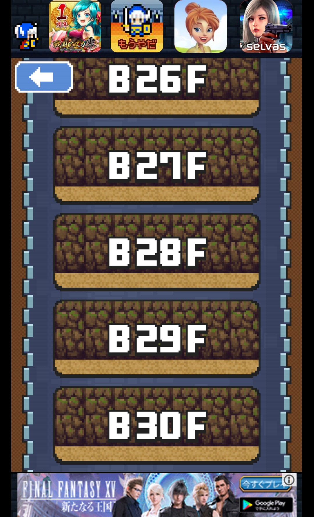 フロアをやり直す方法はゲームスタートの画面に「フロアリスト」ボタンがあるので、そちらをタップして任意のフロアを選びましょう。