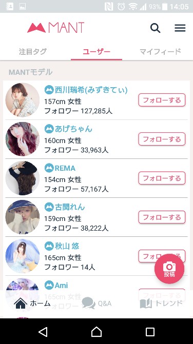 「ファッションコーディネート アプリ MANT -オシャレのお悩み相談アプリ‐」なら、お気に入りのユーザーをフォローできるので、おしゃれに敏感なかたにはとてもおすすめの機能です。