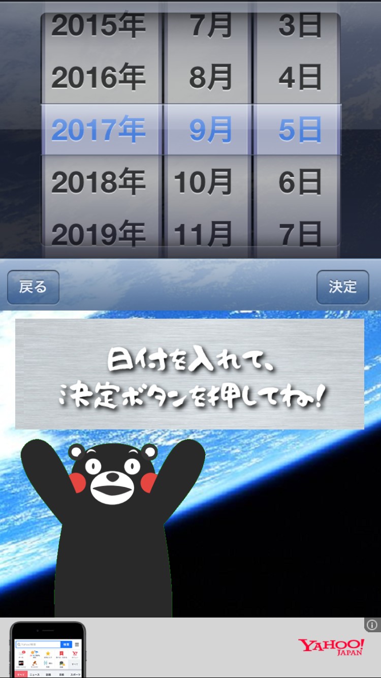 マスコットキャラクターは、あの大人気ゆるキャラ・くまモン。アプリを起動すると、壮大な宇宙と地球を背景に、くまモンがゆる~っと回っています。この映像を見るだけでも何だか癒されますね。くまモン、憎めないやつ!(笑)