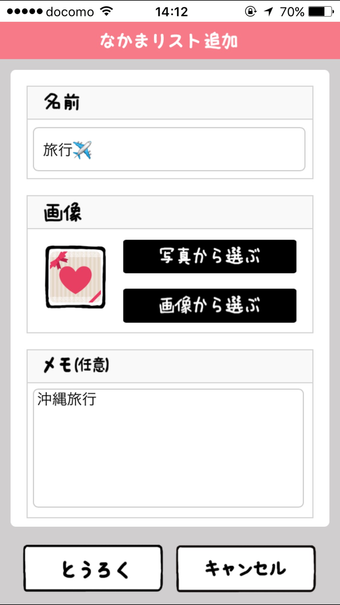 3つのリストから作りたい地図に合うリストを選んで作成していきます。リストは「リスト名」「画像」「メモ」などの登録もできます。たくさんオリジナルの地図を作りたくなりますね。みんなで旅行するときに「なかまリスト」をみんなで地図を作ってみるのも楽しそうですね。