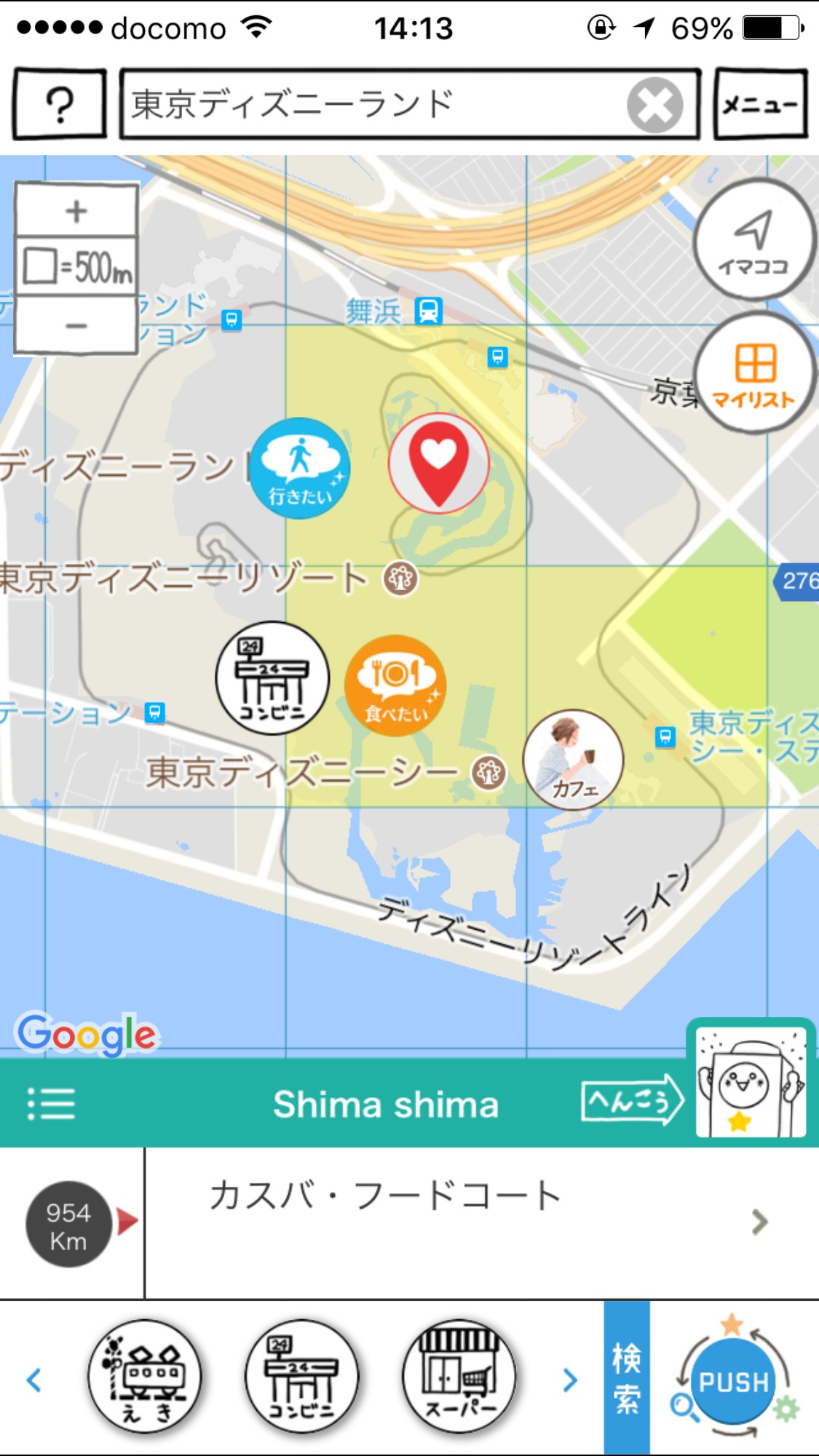 地図上に場所の登録や周辺の情報を収集できるマーカーを置いて自分オリジナルの地図を作成することができる地図アプリです。可愛いキャラクターが出てくるちょっとコミカルなアプリです。自宅周辺でお気に入りの店や場所を登録してみるのもいいし、旅行先で行きたい観光地や行きたいレストランなどを登録するのもいいし、仕事に使うのもいいですね。オリジナルの地図が作成できるから、分かりやすい地図を利用できます。しかも、作った地図ごとにURLを発行できる優れものです。作った地図を友達にメールやSNSで送ることも可能ですよ。こだわりの地図ができそうですね。