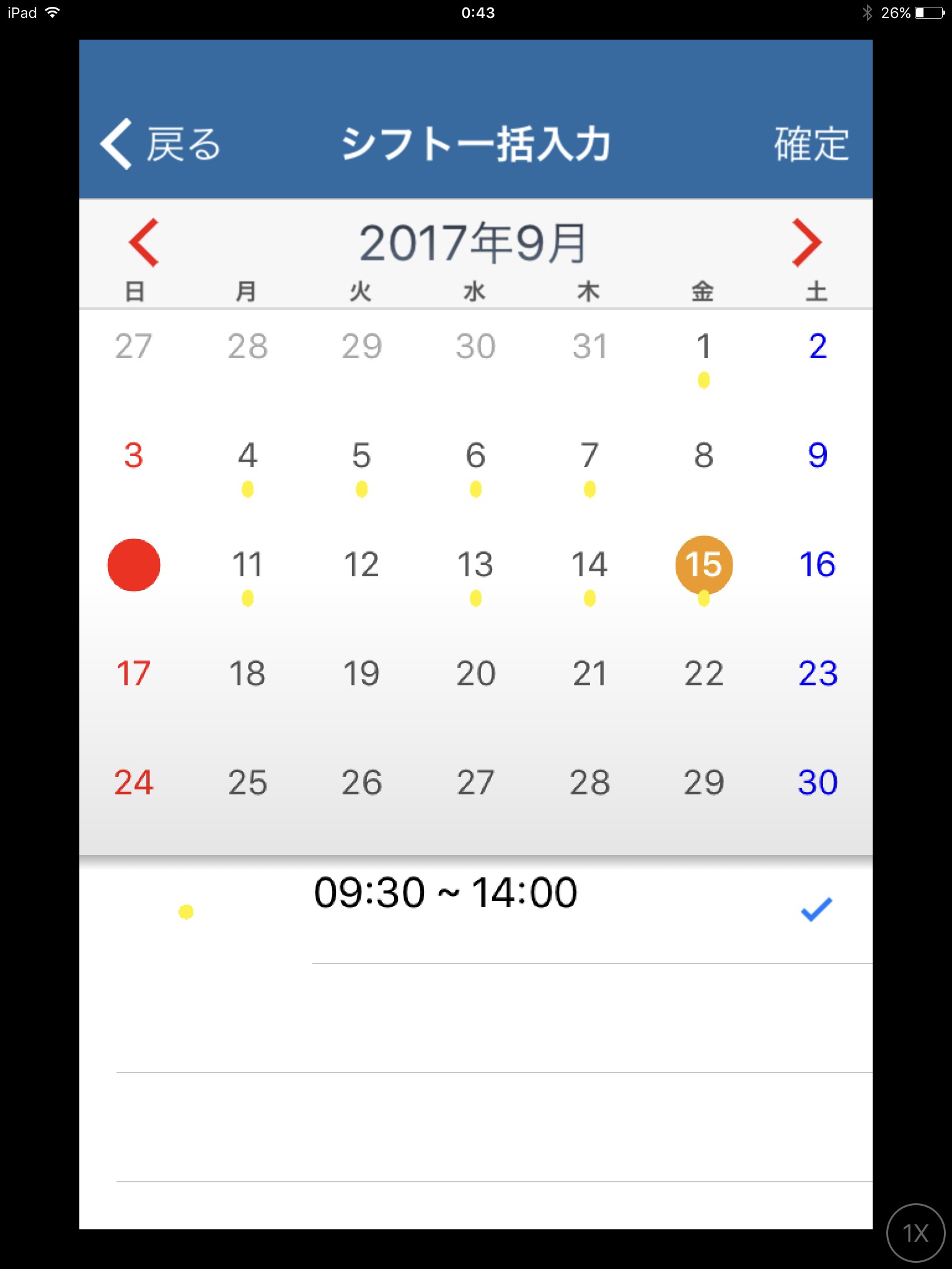 それに、一括入力の機能があるため、一回一回登録内容を選択する必要もありません。勤務先を選んで、時間を選んで、シフトのわかっているカレンダーの日にちをいくつかチェックするだけです。