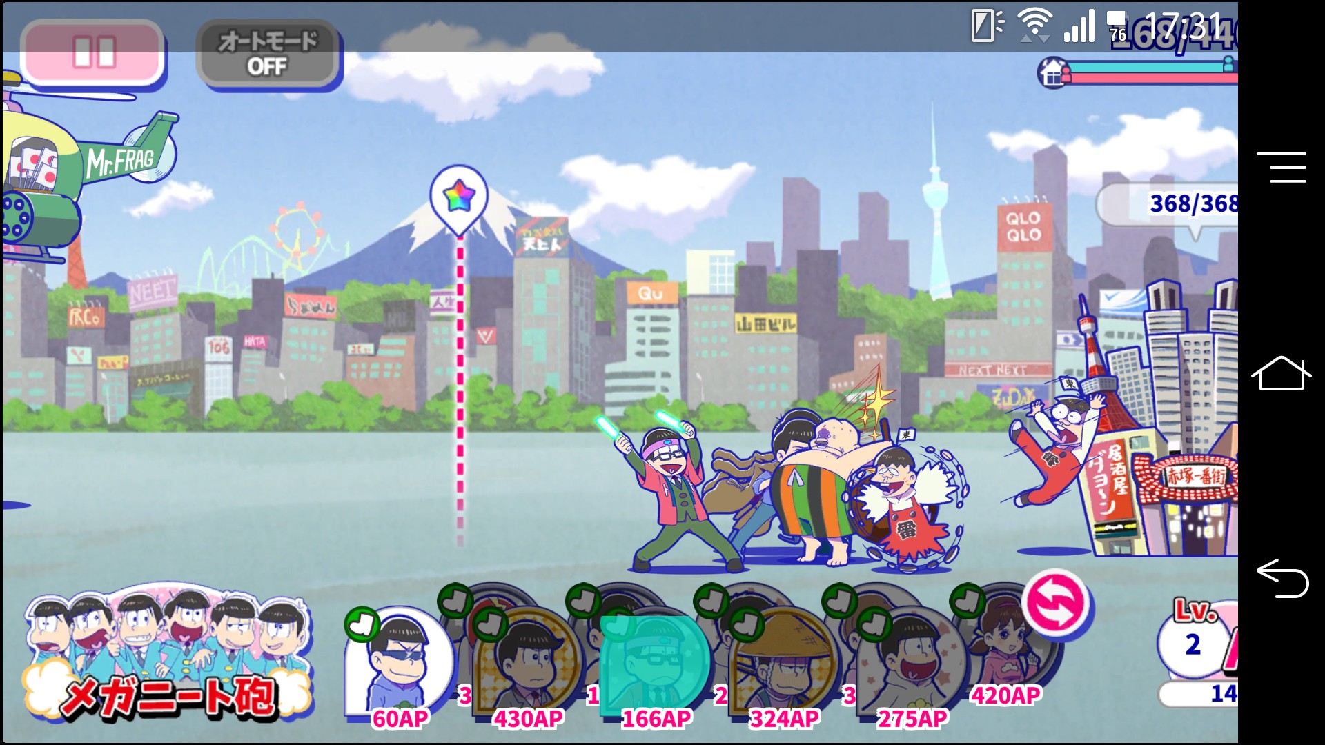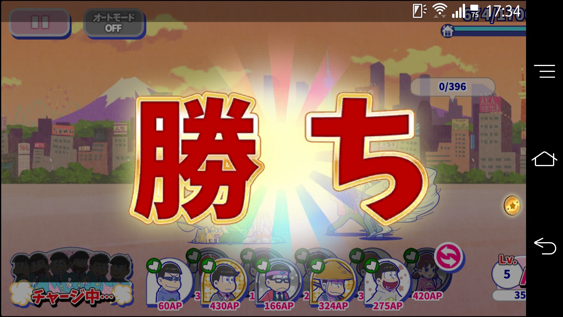操作自体は六つ子をどんどん出撃させるだけなので、バトルゲームが初心者でも気軽に楽しむことができます。