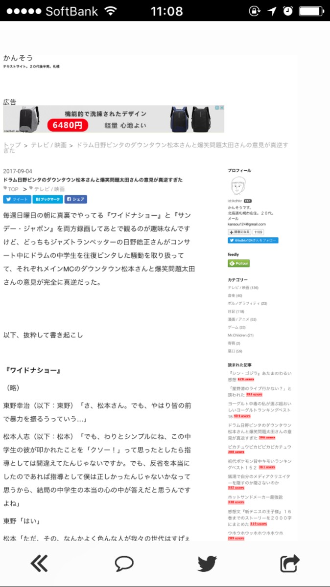 また、気になったニュースをすぐにTwitter・Facebookで共有できるので、Twitter・Facebookをしている人にもおすすめのアプリです。