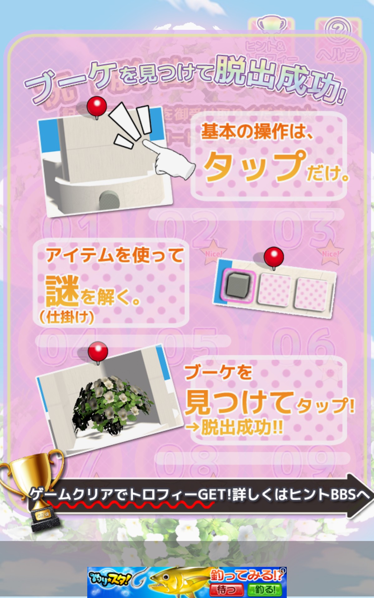 脱出ゲームとジューンブライドがどう結びつくのかと思って始めましたが、ブーケを探し出すという脱出ゲームではない物理的パズルゲームという感じがしました。