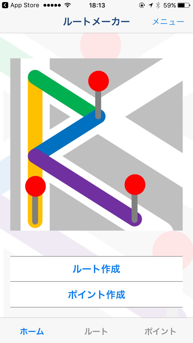 アプリを立ち上げると、「ルート作成」と、「ポイント作成」というアイコンが出てきました。
