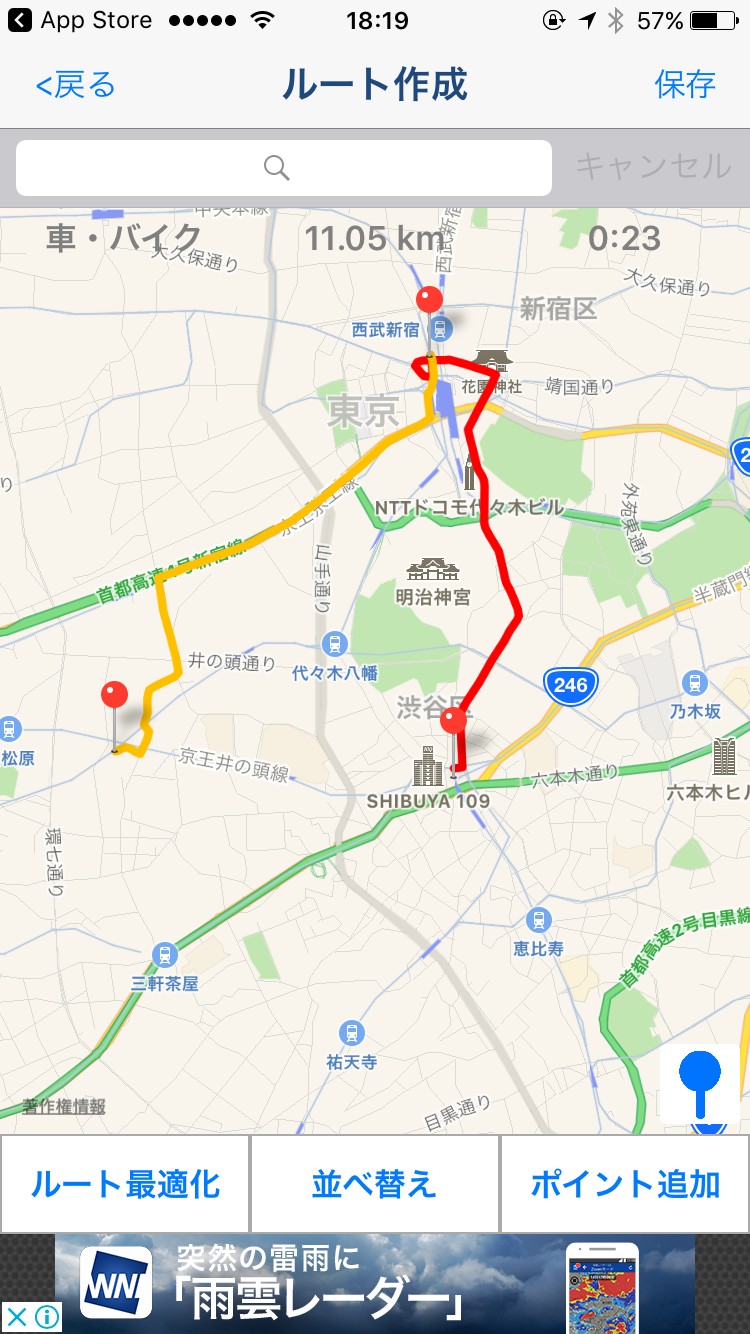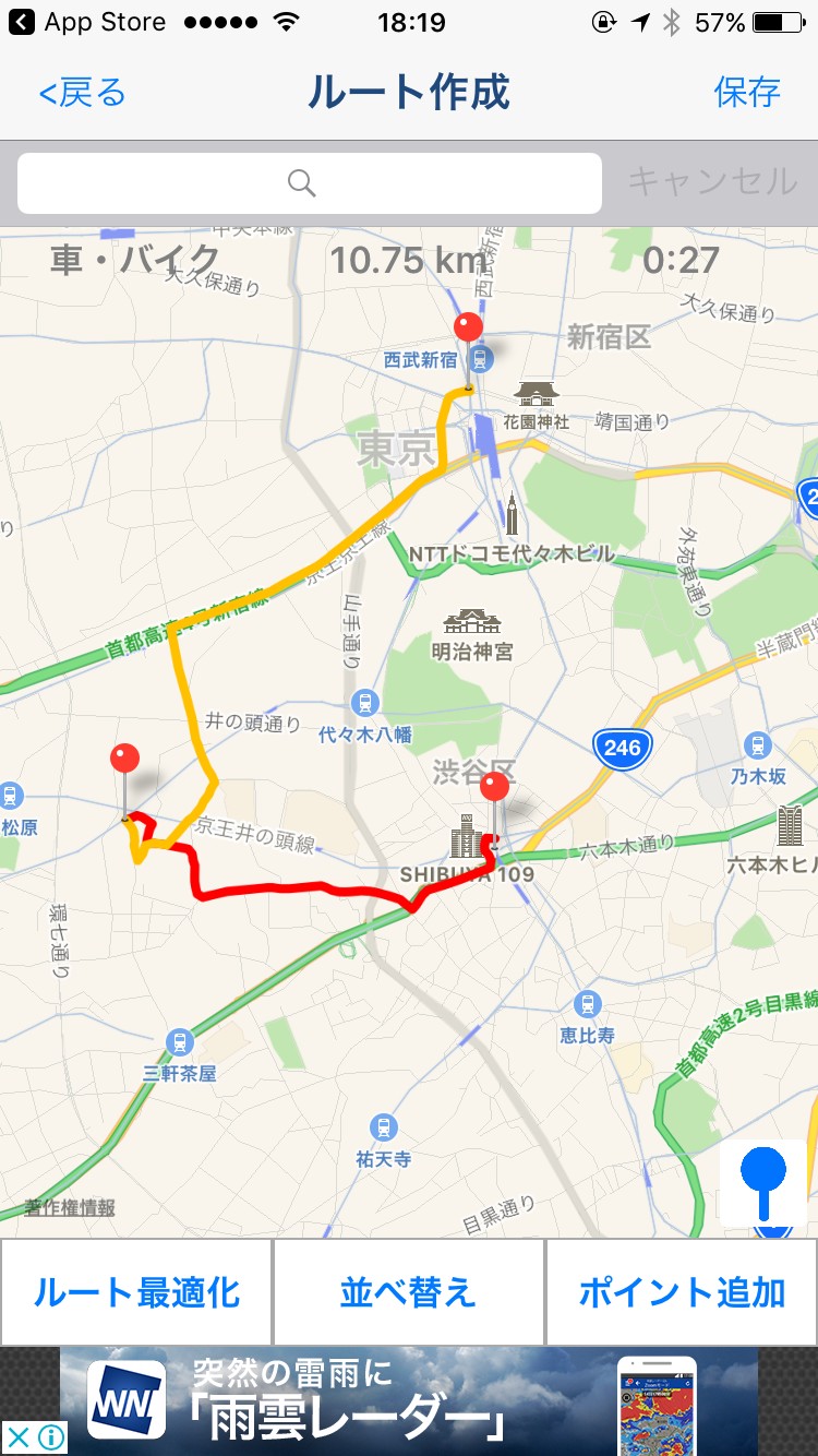 そして「ポイント追加」をタップし、目的地を入力していきます。