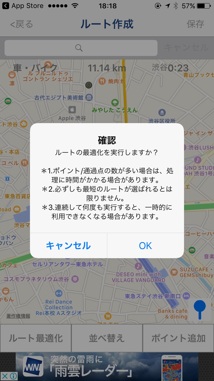 目的地を入力したら、「ルート最適化」をタップしてみましょう。