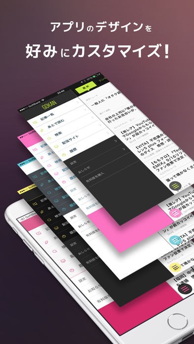 この「五感を刺激する2chまとめ-Gokan(ゴカン)」は、いつでもどこでも2ちゃんねるを楽しむことができるアプリです。“あとで読む”という機能を使って記事を登録しておくだけで、圏外であってもどこでも2ちゃんねるを楽しむことができますよ。また、デザイン・レイアウトを8種のテンプレートの中から選ぶことができるため、自分好みの背景でおもしろい記事を読むことができますよ。