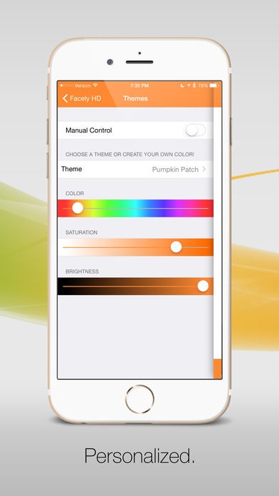 アプリ内に用意されているカラーは、「赤・青・黄」などの単色だけではありません。元となるカラーを選択したあと、彩度と明るさを細かく調整できあなた好みのオリジナルカラーが作成できます。