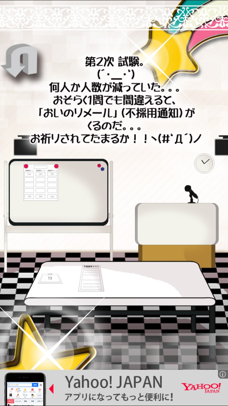 就職活動がテーマになっているこのアプリの謎解きは、ほとんどが頭を使うIQテストのような形式になっています。
