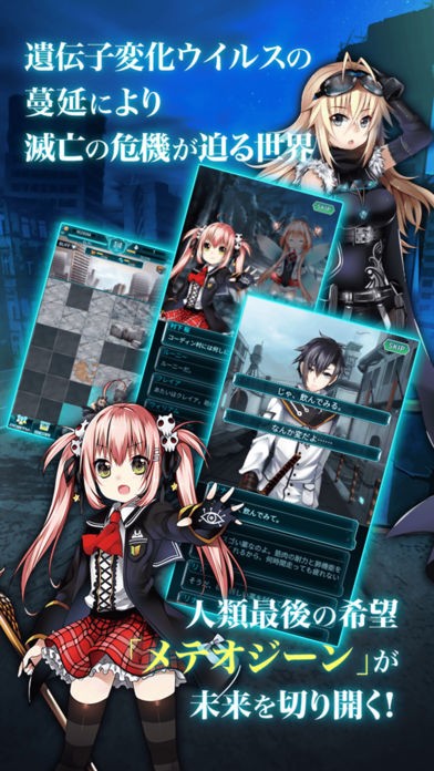 「メテオジーン」とは、「天の涙」と呼ばれた隕石落下事件で落下した隕石により地球にもたらされた遺伝子変化ウイルスの蔓延により滅亡の危機に瀕していた世界で、ウイルスに感染した大半の者はアンデッド化し、人々を襲い始めました。一方、ウイルスに感染した人の中で一部の人間は遺伝子の変化により通常の人間では持ちえない超常の力を得ることになりました。彼らは「メテオジーン」と呼ばれ、その力で人々を救うためアンデッドに対抗し始めました。「希望」と「絆」が世界を救う新感覚のコマンドバトルRPG「メテオジーン」をご紹介します。