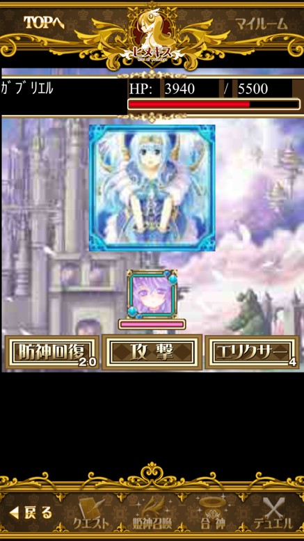 「ヒメキス」では、メインのクエスト・デュエル・姫神召喚・ユニオンからカードでは、合神・アルバム・姫神・祭壇・除名・PT編成などたくさんの要素が楽しめます。慣れないうちは何から手をつけたらいいかわからないかもしれませんね。最初はメインのクエストに挑戦して姫神のレベルをアップさせましょう。今ならLv20までは消費スタミナも0のままクエストに挑戦することができます。さらに、Lv20に到達すると、プレミアム召喚チケットがもらえるので、まずは姫神をLv20まで育ててみましょう。クエストにも慣れてきたら、姫神の強化にも挑戦してみよう。強化すれば攻撃力なども上がるので、BOSS戦を有利に進めることができますよ。