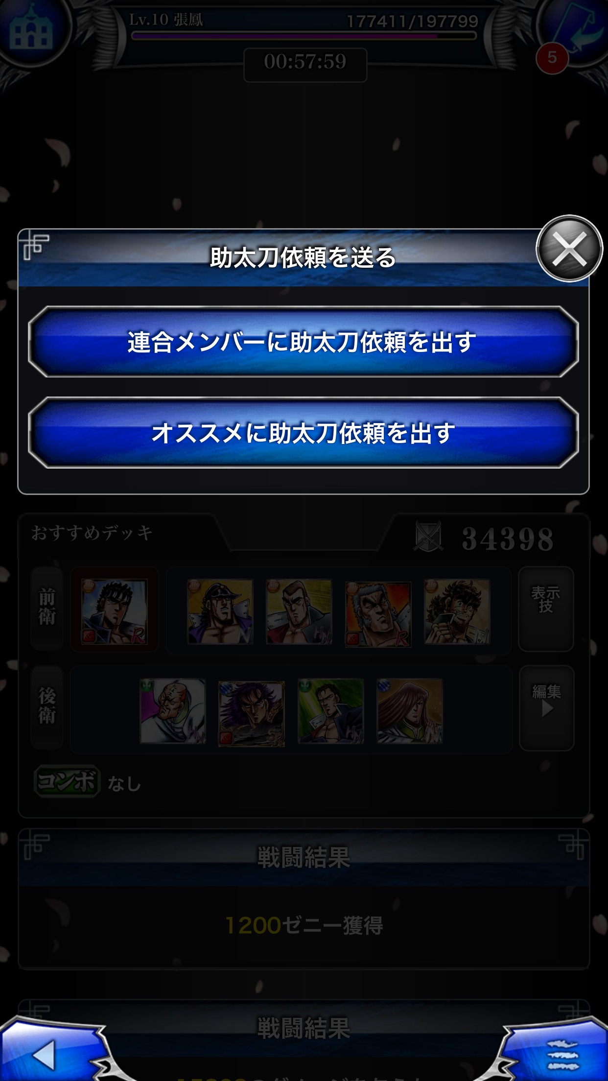決闘は他ユーザーと1対1でのバトルです。勝利すると民明書房の断片を獲得できます。