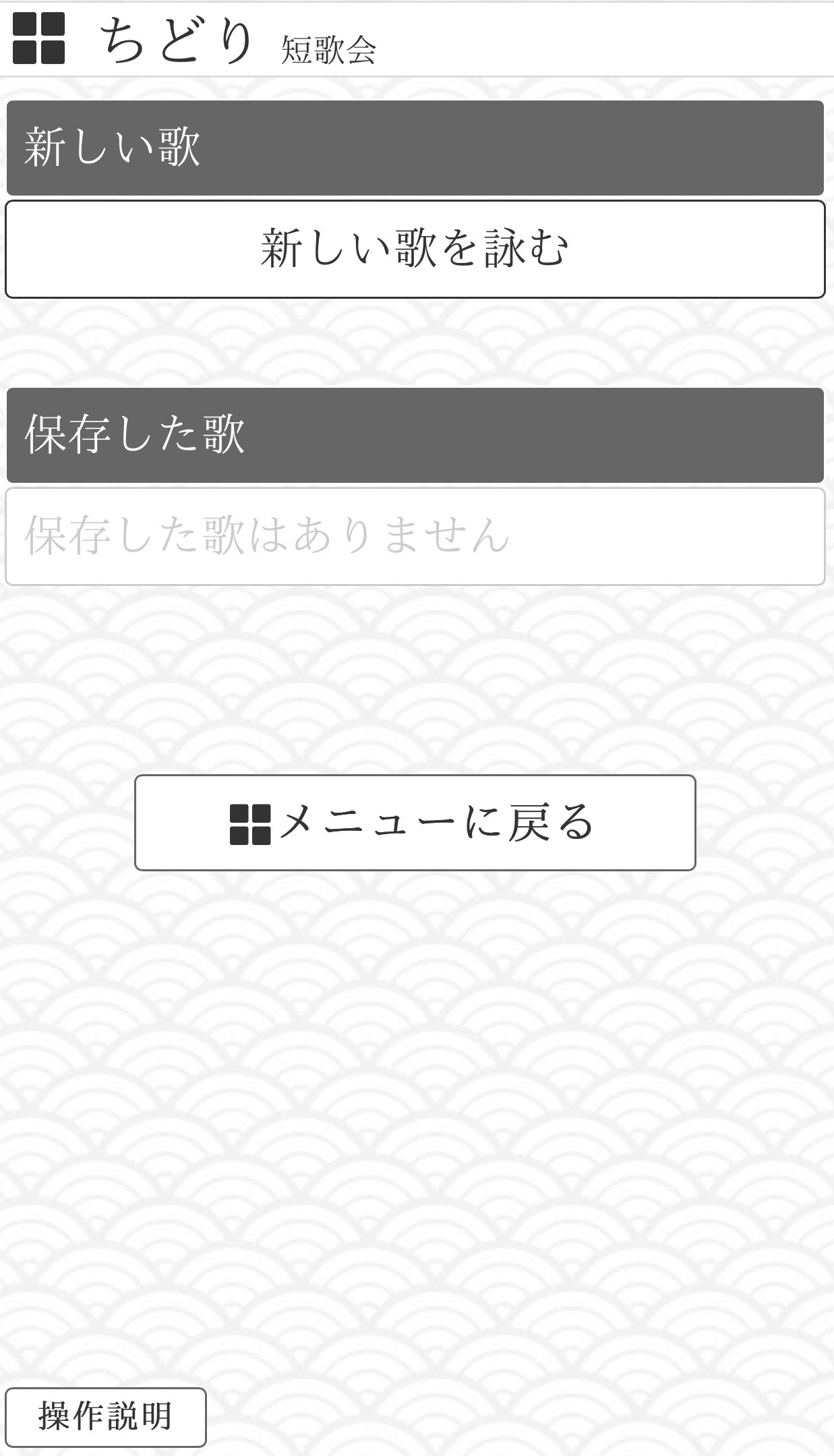 「詠む」をタップすると、このような画面が表示されますので、「新しい歌を詠む」をタップして短歌を作っていきます。