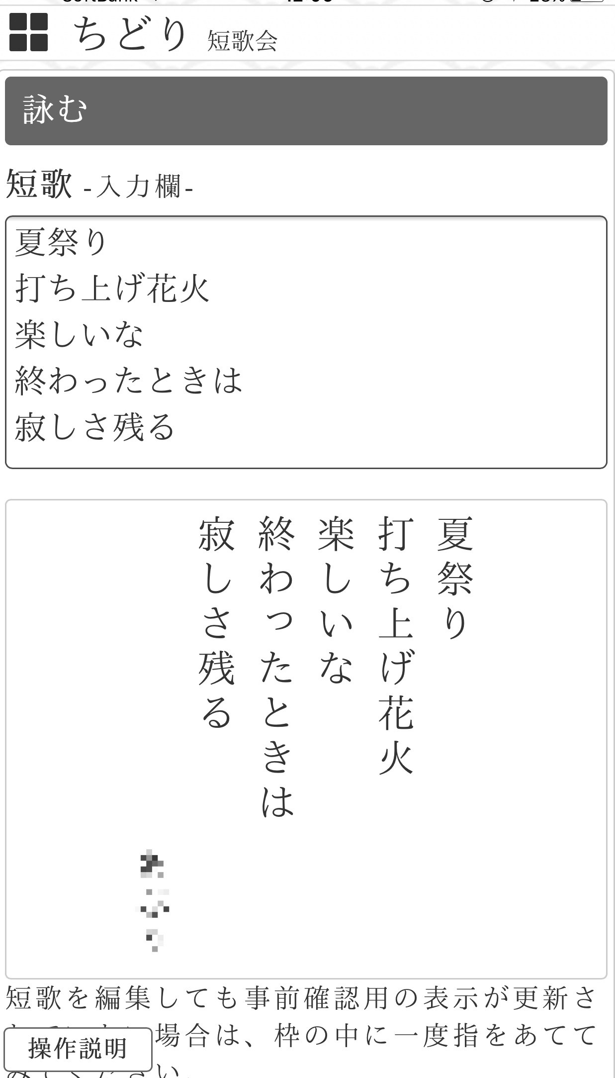 このアプリでは、自分が作った短歌を、簡単に投稿して他の人に読んでもらうことができます。