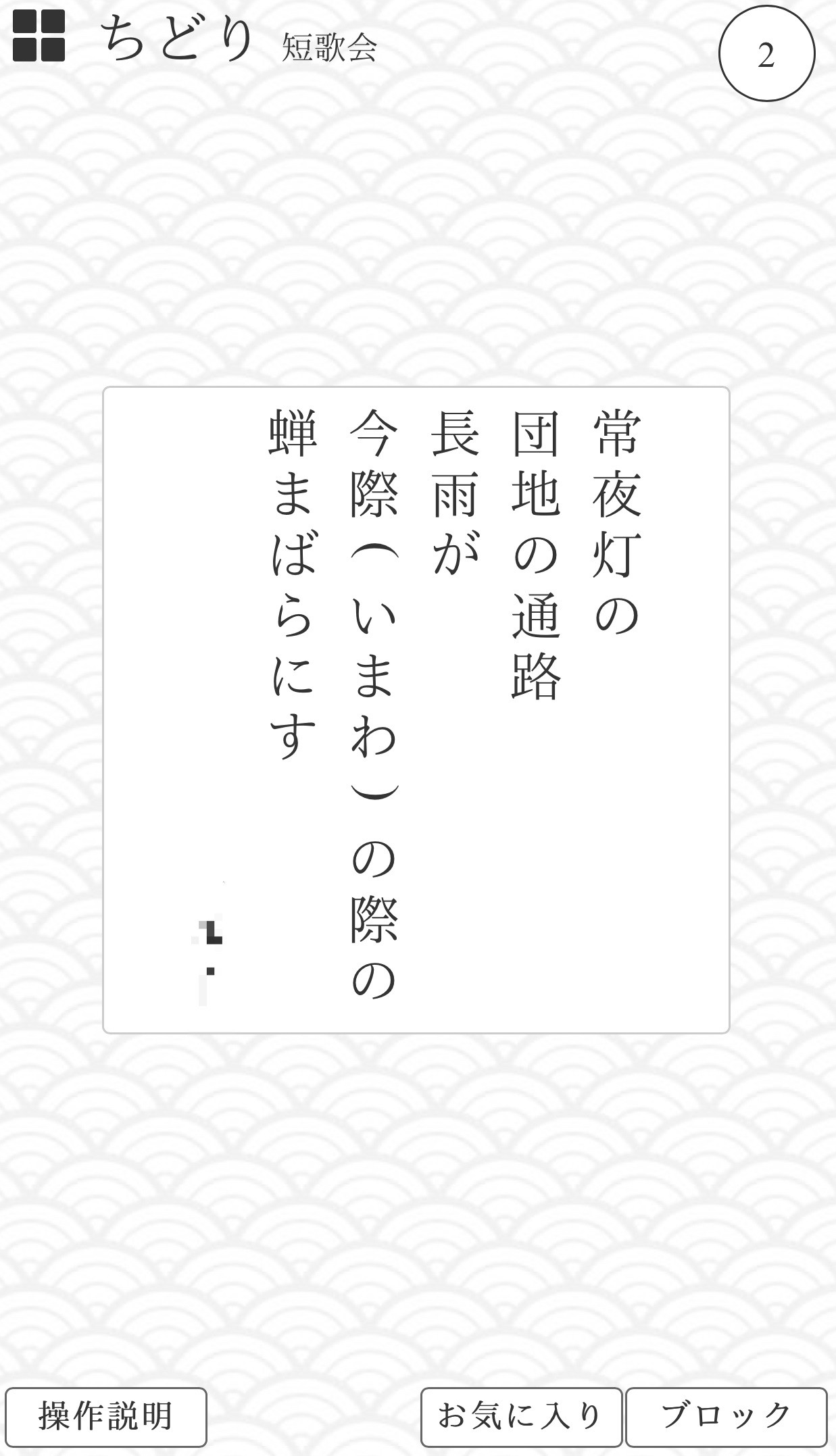 気に入った短歌があったら「お気に入り」して何度も読みたい人、苦手な作者は「ブロック」で非表示にしたい人におすすめ!
