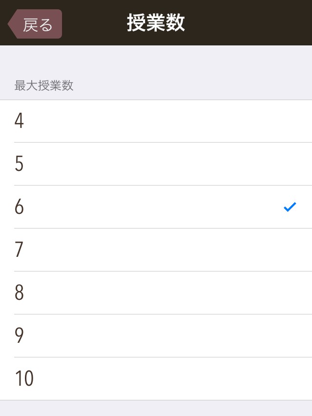 曜日によって授業数にばらつきがある時に便利なのが、アプリの基本設定にある最大授業数の変更です。