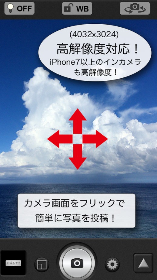 写真サイズが豊富で、画質、画像加工機能が豊富な無音カメラアプリです。サイレント撮影を画面内ボタンで簡単に行え、撮影した画像をSNSにさっと投稿することができます。ホワイトバランスの調整やリサイズも簡単にできるので、普段より美しい写真を投稿できるでしょう。日時を写真にスタンプすることもできるので、第三者になりすまし写真を悪用される心配もありません。