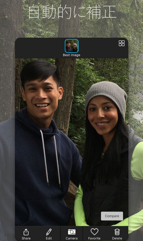 人工知能の搭載により、ベストショットを残せるのが魅力のアプリです。シャッター音無音機能はもちろん、撮影した画像を自動補正してくれる点が注目されています。人物写真はもちろん、ペットや食べ物の写真も美しく表現できます。