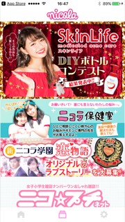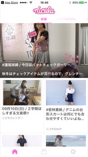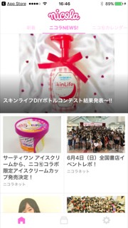 ニコモと呼ばれる二コラモデルの私服スナップや、二コラNEWS、日替わりニコ㋲カレンダー、nicolaTVと二コモを中心とした女子向けの内容で、アプリのどこを開いてもキラキラしています。