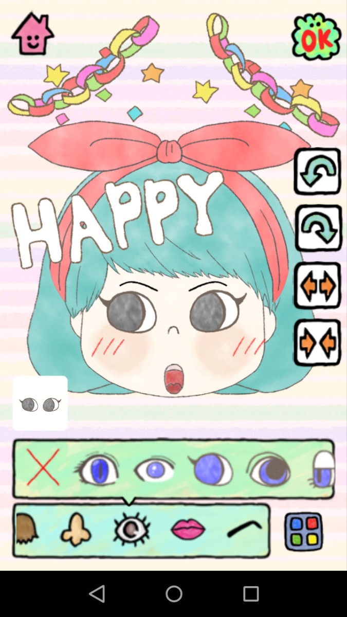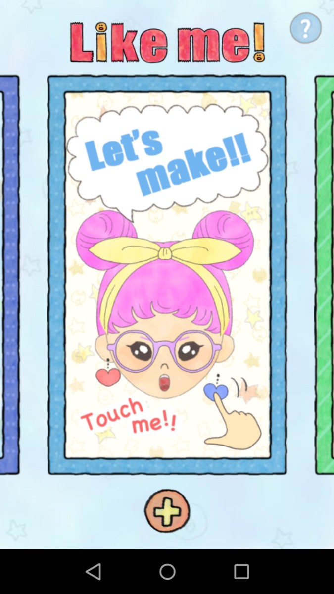 (1)アプリを起動して、「let's make!!」のイラストをタップすると似顔絵作成画面が開く