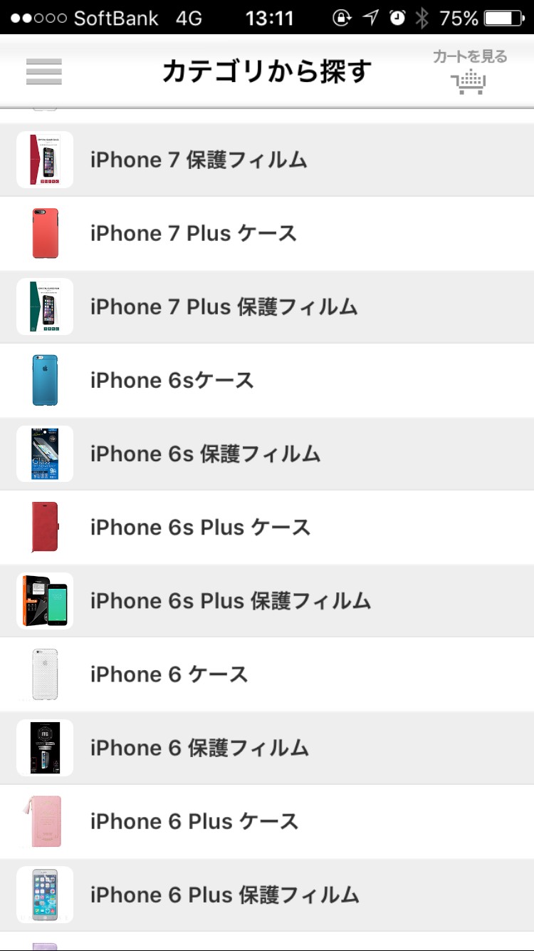 商品を探す際には、自分の持っているiPhone機種のアイテムのみを一覧で表示させることができ、アイテムごとに並べ替えて見ることも可能です。
