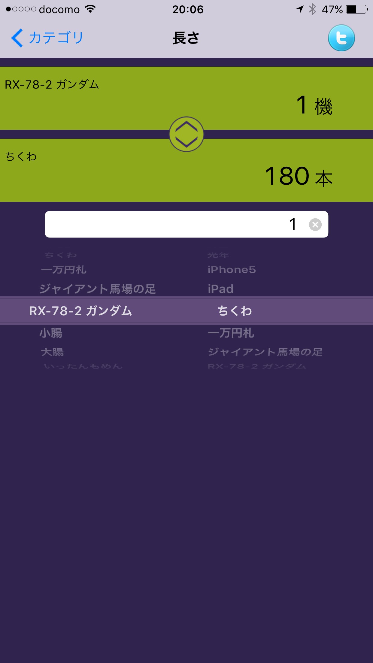 このアプリの面白いポイントは、日常で使う単位以外に「白鵬」「コンバトラーV」などの独自の単位で計算できることです。