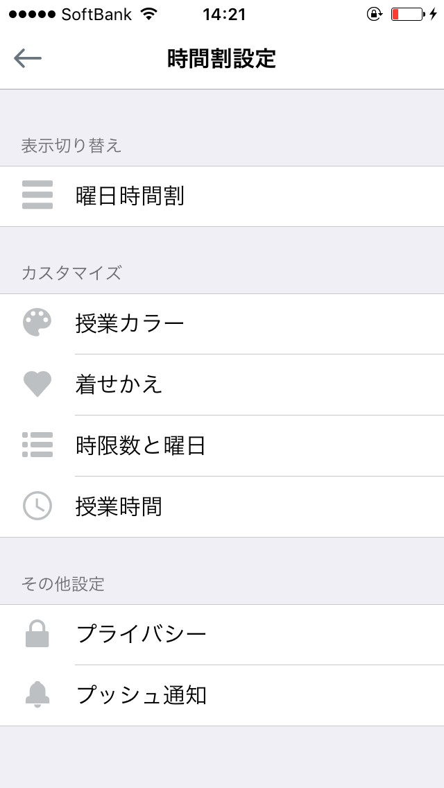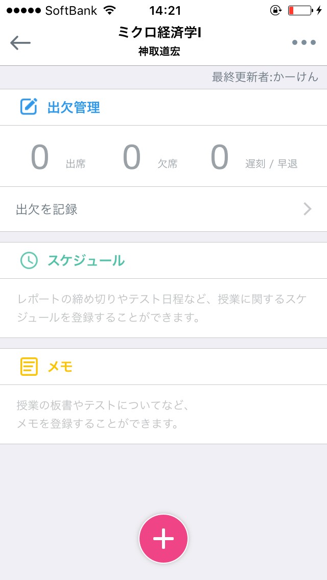 時間割内にある、授業データを登録後、各授業データの詳細画面には、