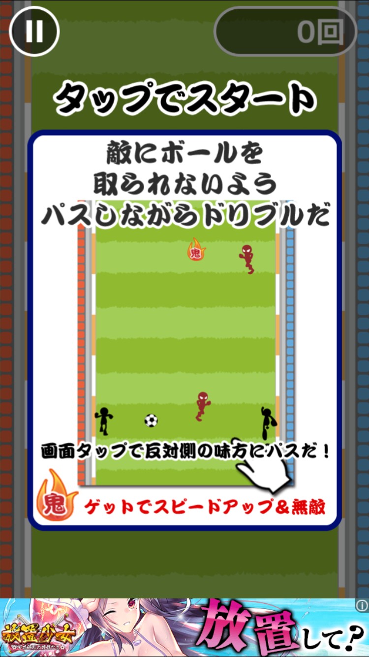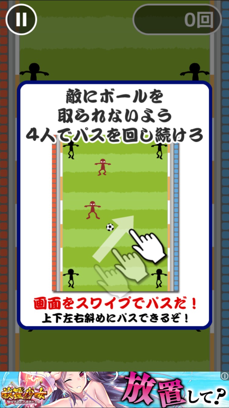操作方法は簡単で、画面をスワイプしてパスを出す簡単なゲームです。