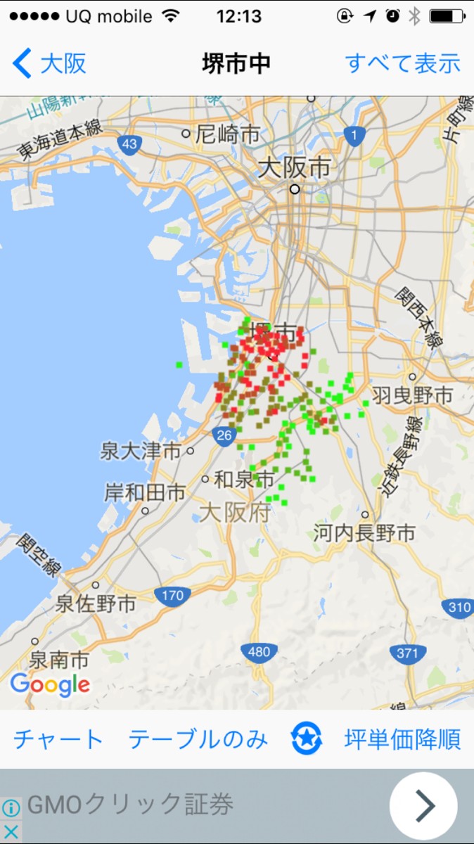 五十音順/坪単価順/地積順/住宅価格順/価格上昇率順で、並び替え表示が可能です。