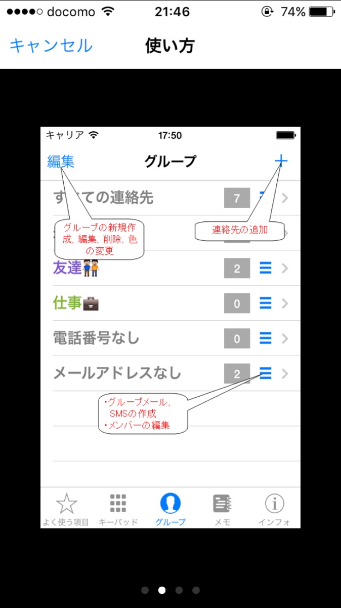 - 「ハチ連絡先 Lite」簡単にグループ化できました
