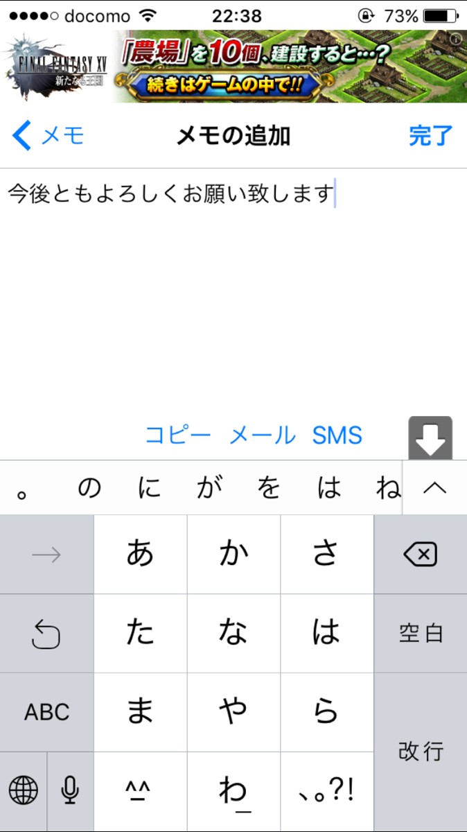 このアプリにあるメモ機能は、あなたが頻繁に使う言葉などを登録しておくとメールを送る際便利です!