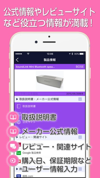 覚えておきたい情報、購入日、保証期間、電池などの消耗品に関することや自分で見つけた関連サイトのリンクも自分で入力できるので、わからなくなる心配もなし。