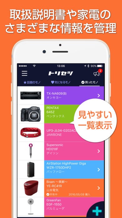 3. 登録できる商品種類は多種多様!ガジェットから白物、住宅機器に車載器まで。選りすぐりの旬の最新機器情報や共有機能もあり!ぜんぶ無料で使えます。