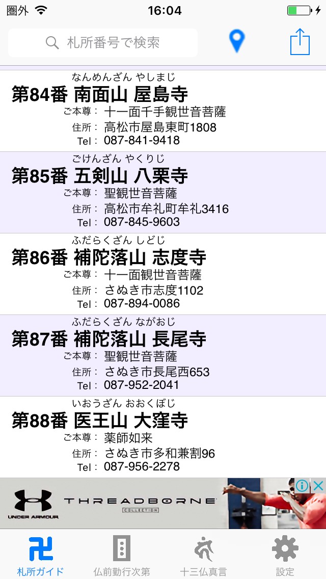 「 巡礼Go Lite 」には全88か所の情報がしっかり入って、Googleマップ連携で札所までのルートも確認OK。