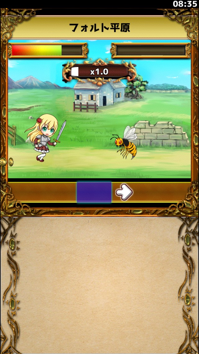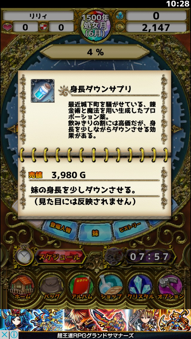 バイトをスケジュールに組むことでステータス強化をすることが出来ます。それぞれのバイトで強化される項目は異なりますので、慎重に選びましょう。またバイトを組むことで日付も進むので注意しましょう。冒険に出かけることで戦闘が始まります。戦闘のシステムは簡単で、右から左へ流れてくる矢印に従って、下の枠内でフリックしましょう。矢印が真ん中の青い部分に来るタイミングでフリックしなければなりません。どんどん矢印が流れてくるスピードもアップするので気をつけましょう。バイトや冒険をすることでGoldが貯まっていきます。貯まったGoldでお買い物をし、ゲームを有利に進められるアイテムを購入しましょう。それぞれの道具は効果が書かれていないので、積極的に買って確かめるしかないようです。