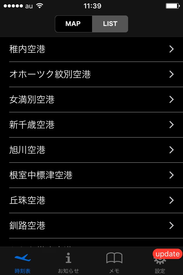 「駅探 飛行機時刻表 国内線」の時刻表は、MAPとLISTの2種類で表示されます。直感的に使えるMAPか、一覧で確認ができるLISTか。自分で利用しやすい方を選択すれば、アプリはさらに使いやすさを増すことでしょう。