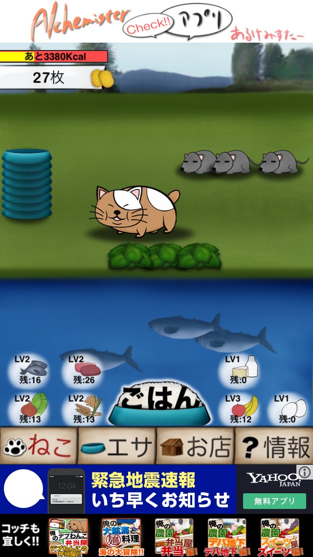 「俺のデブねこ育成物語」ガリガリ貧弱ねこをエサを与え可愛がりデブねこへと育成させていくカジュアル育成ゲームがやめられない