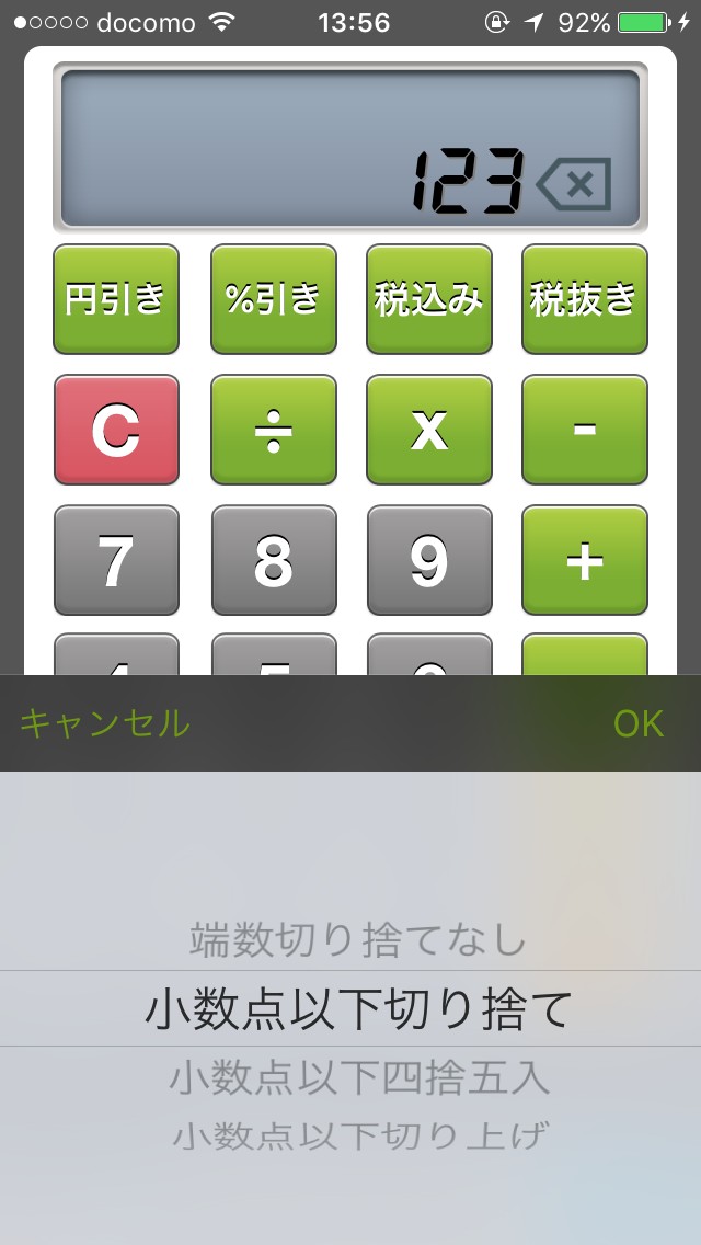 円引きや%引きなど、様々な計算がボタン1つでできるので手軽です。