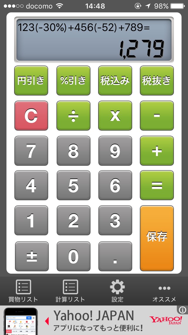 計算を保存しておくこともできますので、帰ってから家計簿を付ける場合でも便利に活用できますね。