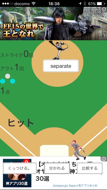 プレイヤーは、ピッチャーが投げてくるボールに見立てた問題を、バッターになって打っていきます。答えを押すタイミングや問題の答えが合っているか間違っているかによって、結果が変わります。