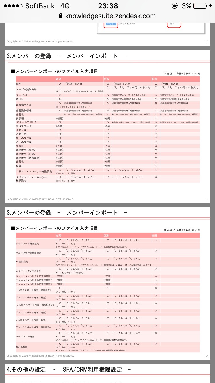 はじめに企業情報の設定、部署の作成、メンバーの登録、SFA/CRM利用、設備設定などの設定をして下さい。それから詳しく内容を記していく形となっております。「Knowledge Suite」のアプリのユーザーサポートには、操作マニュアルがあります。操作方法が詳しく記載されておりますので、参考にしていただくと、より便利に使っていただけるかと思います。