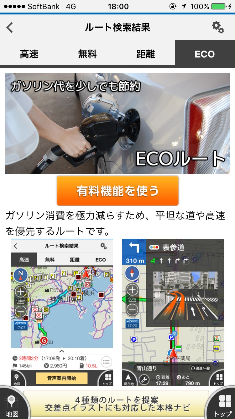 高速道路に乗らないからといって、下道でガソリンをたくさん消費してしまっても意味がありませんので、ガソリン節約という目的に対して、この機能は非常に有効です。