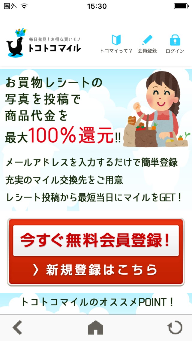 「トコトコマイル / レシートでポイントを貯めてお得な生活!」の使い方