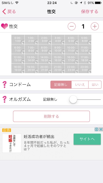 「WomanLog カレンダー」では、一つの情報をより詳しく記録することができます。例えば、私のカレンダーで「気分」を記録するとします。気分を記録する時は、どんな気分なのか、アイコンを選択することができます。この選択できるアイコン数は30を超える数が用意されています。他にも、性交では、コンドームの有無を記録したり、どの時間帯にしたのかを記録できたり、オルガズムの度合いを記録することもできます。妊活をしている人にとっては嬉しい機能ですね。症状では、おりものを記録したり、肌トラブルを記録することもできるので、生理前の自分の肌状況も把握することができますよ。