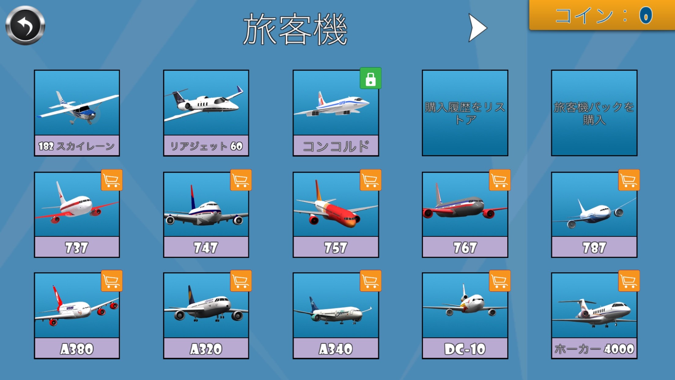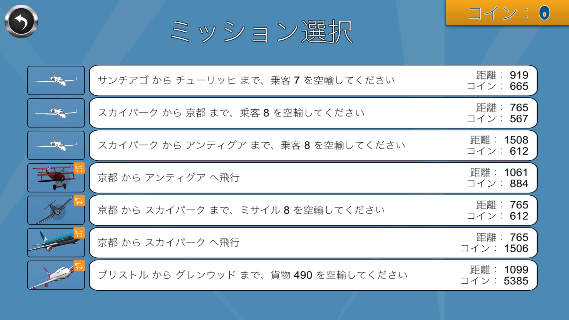 クリアしていくと様々な機体を操縦可能になります。例えば旅客機、貨物機、軍用機を使用可能になり、飛行スピードが上昇し、自然と難易度も上がっていきますので、飽きることなくプレイをしていくことが可能であり、楽しめるアプリですのでおすすめです。